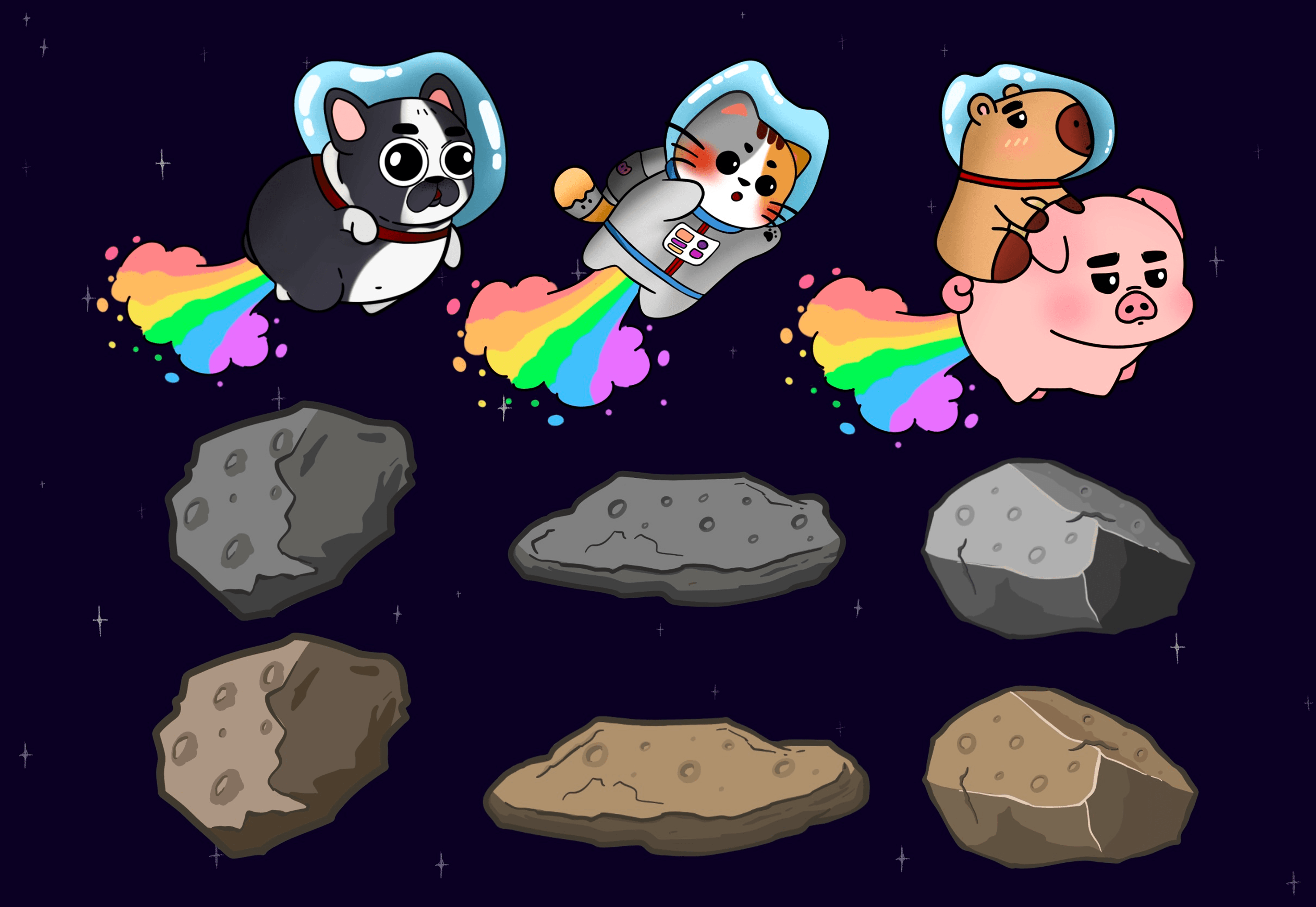 - Characters: Designed and drew the three animal heroes Space Dog, Space Pig&Capypara, or SpaceCat. Each one has its own personality and style.